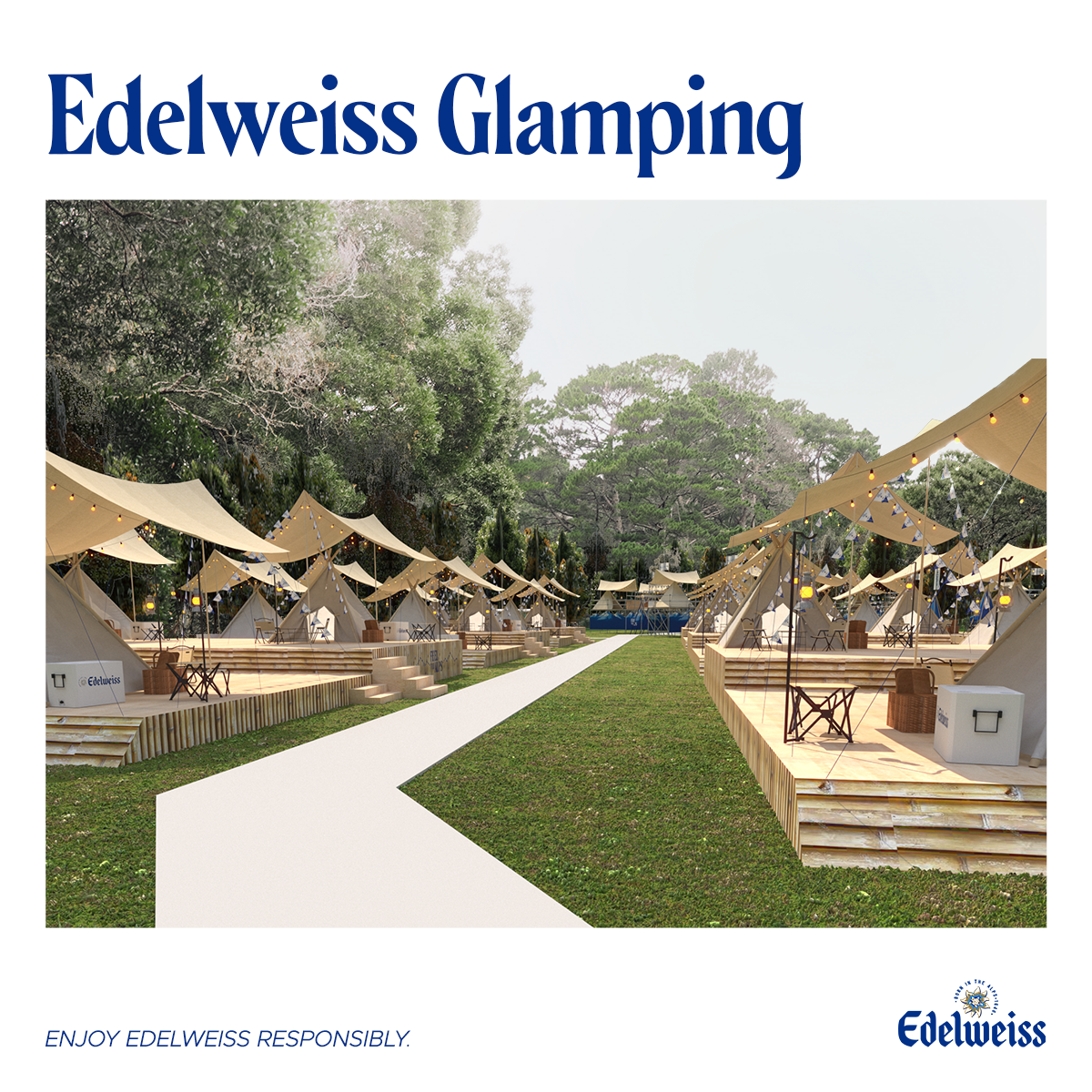 Aside from immersing themselves in the diverse music, day pass holders and campers can anticipate a series of stimulating games such as “Giant Connect 4”, “Giant Wall Ball Maze”, “Crossnet” and “Cornhole”. The Alps Bar will serve Edelweiss wheat beer, inviting fans to experience the alps through its subtle fruitiness and refreshing taste. There will be a variety of tents for contest winners to enjoy an elevated glamping experience. Sustainability trail walks and morning yoga sessions will also be available for attendees to sink in and appreciate nature.